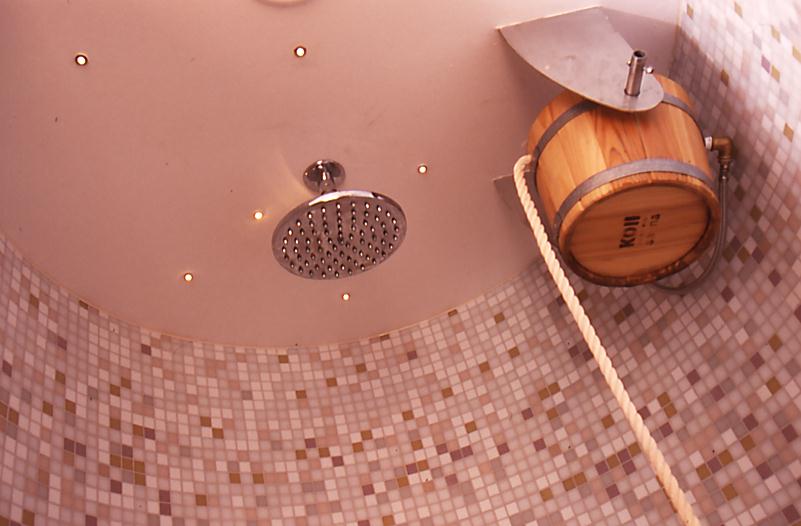 Kaltdusche mit großzügiger Tellerbrause, Eimerduschen, Sternenhimmel