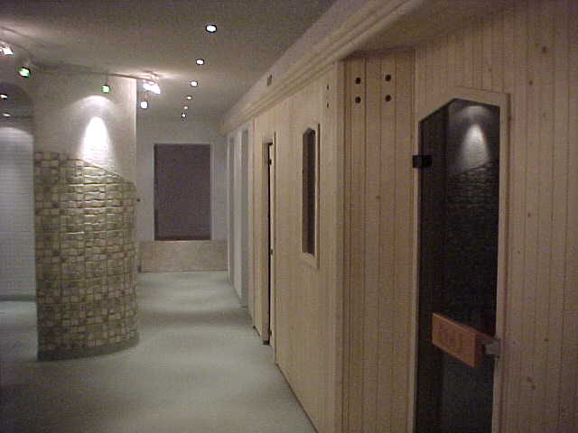 Kalldarium. Rechts hinten Dampfbad verkleidet im gleichen Stil wie