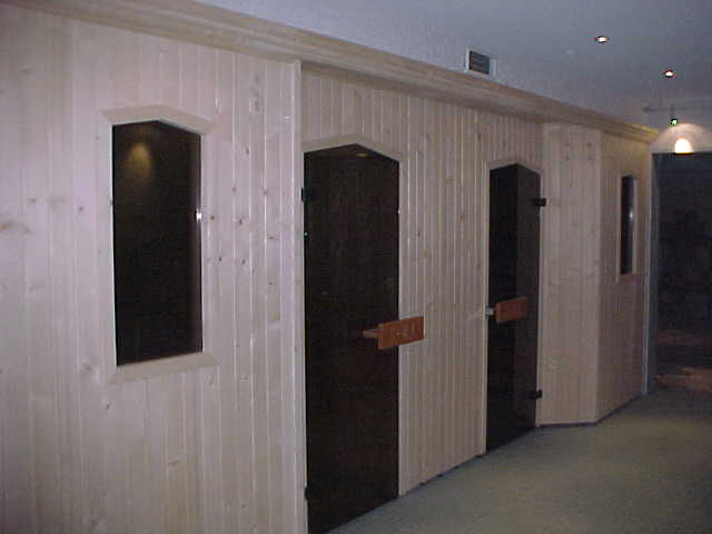 Massivholzausführung. Linke Kabine als Kolldarium ausgestattet.